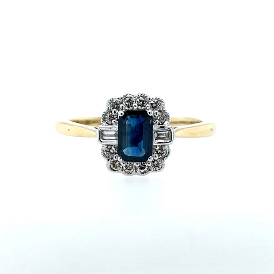 9ct Gold Sapphire & Diamond 0.20ct Rectangular Vintage Lace Ring GRS230