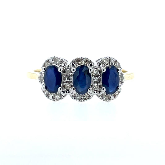 9ct Gold Sapphire & Diamond 3 Halo Ring GRS232