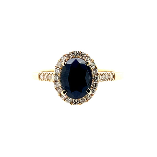 9ct Gold Sapphire & Diamond Halo Ring GRS259