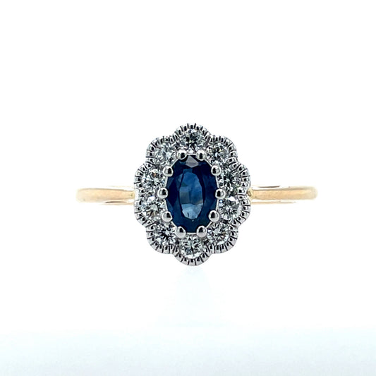 9ct Gold Sapphire & Diamond Vintage Cluster Ring GRS264