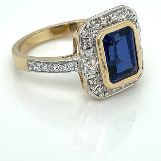 9ct Gold Sapphire & CZ Deco Style Ring GRS240