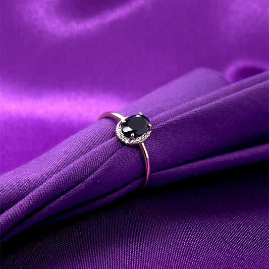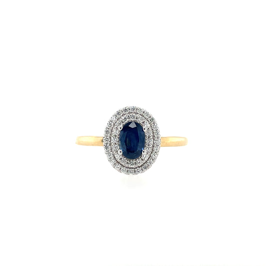 9ct Gold Sapphire & Diamond Halo Ring GRS259