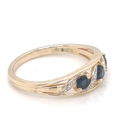 9ct Gold Sapphire & Diamond 0.30ct Vintage Lace Ring GRS231