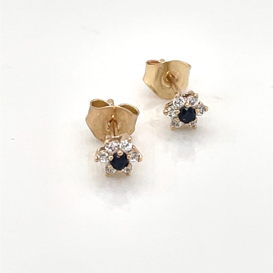 9ct Gold Sapphire CZ Cute Cluster Earrings Stud GES106