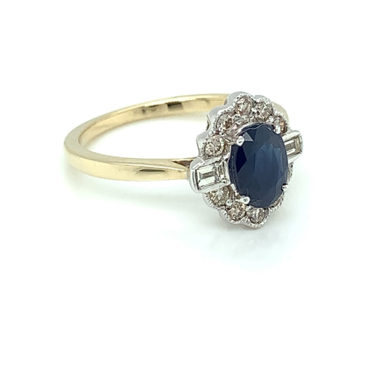 9ct Gold Sapphire & Diamond Cluster Ring GRS133