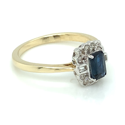 9ct Gold Sapphire & Diamond 0.20ct Rectangular Vintage Lace Ring GRS230