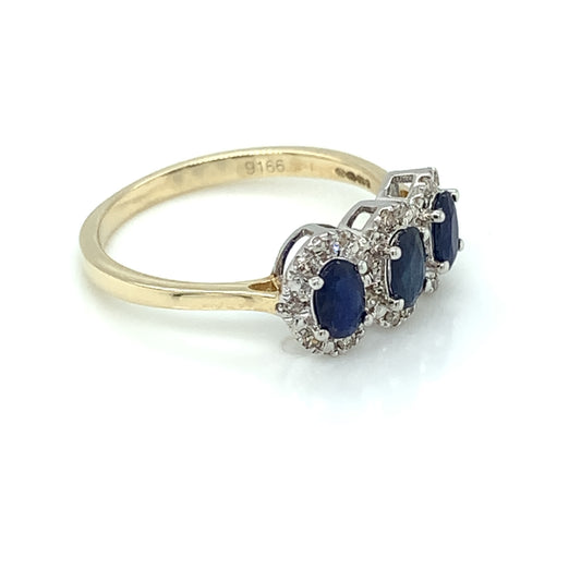 9ct Gold Sapphire & Diamond 3 Halo Ring GRS232