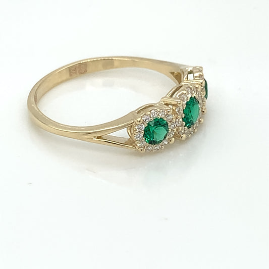 9ct Gold Triple Round Green CZ Halo Ring GRE109