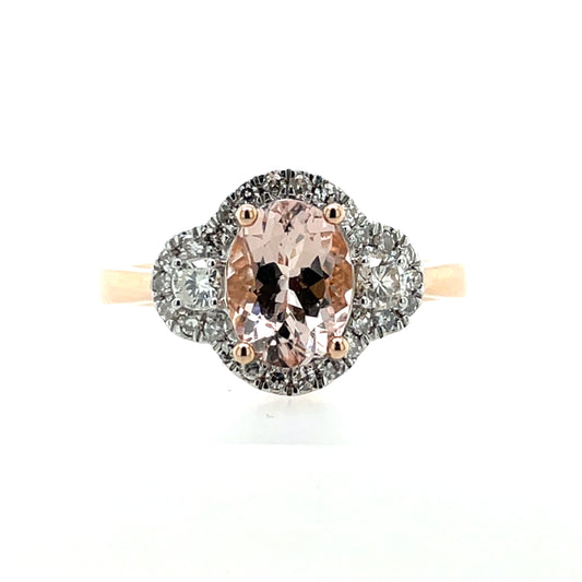 9ct Rose Gold Morganite & Diamond Ring GRX267