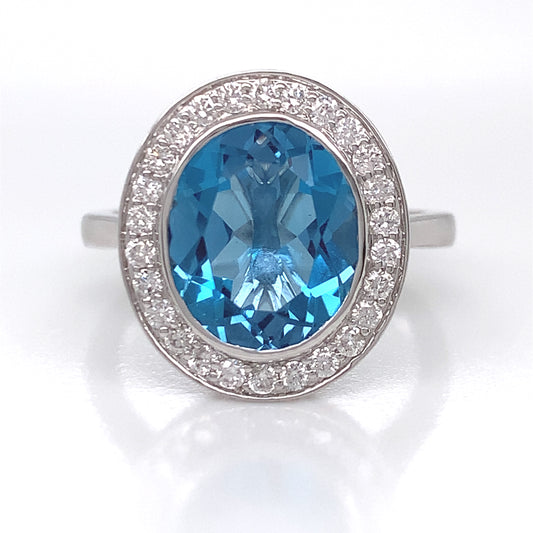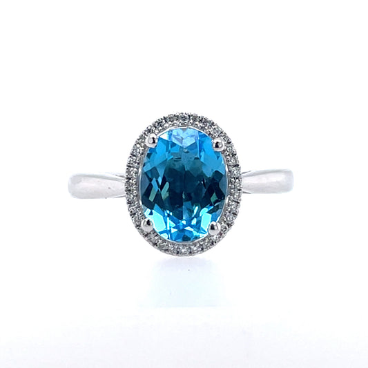 9ct White Gold Blue Topaz Oval Halo Diamond Ring WRX071