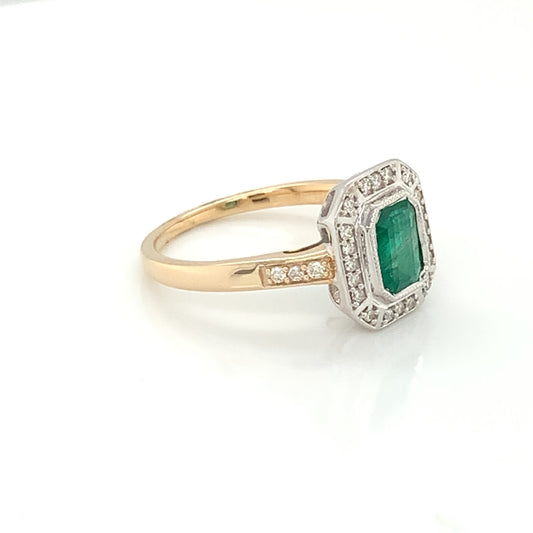 9ct Gold Vintage Style Emerald & Diamond Ring GRE108