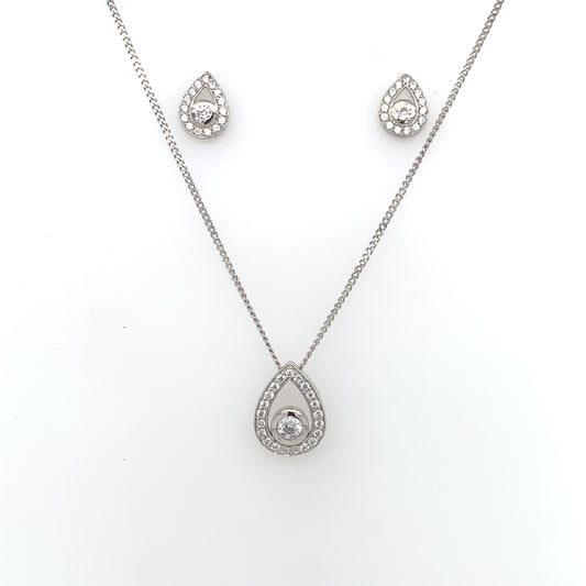 9ct White Gold CZ Teardrop Pendant WPZ041
