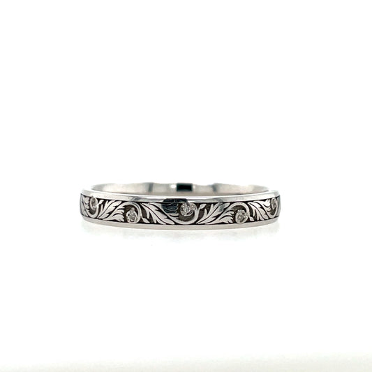 9ct White Gold Vintage-Style Diamond Wedding Band GW143