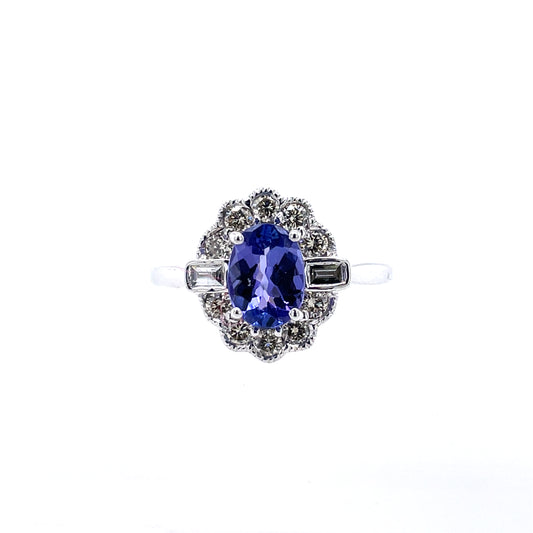 9ct White Gold Tanzanite & Diamond 0.50ct Vintage Lace Ring WRX074