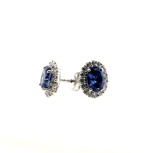 9ct White Gold Sapphire CZ Oval Cluster Stud Earrings GES112