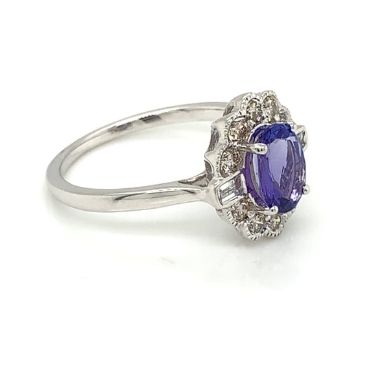 9ct White Gold Tanzanite & Diamond 0.50ct Vintage Lace Ring WRX074
