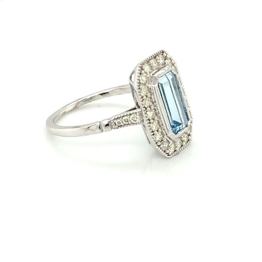 9ct White Gold Vintage Style Blue Topaz & Diamond Ring WRX072