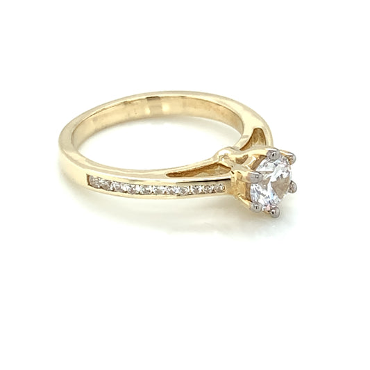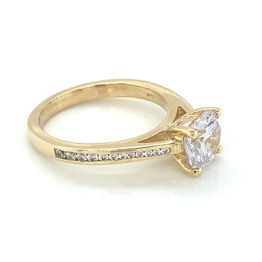 9ct Yellow Gold CZ Solitaire Ring Channel-set Shoulders GRZ284