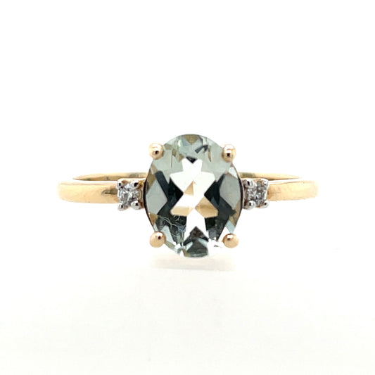 9ct Gold Green Amethyst & CZ Shoulder Ring GRX255
