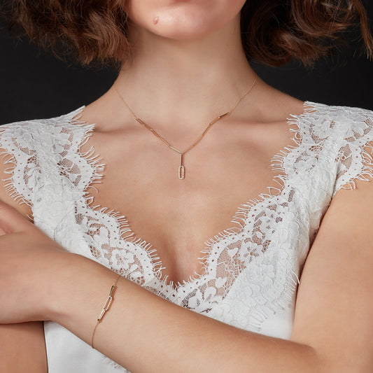 9ct Gold Two-tone CZ Bars Bracelet GB149