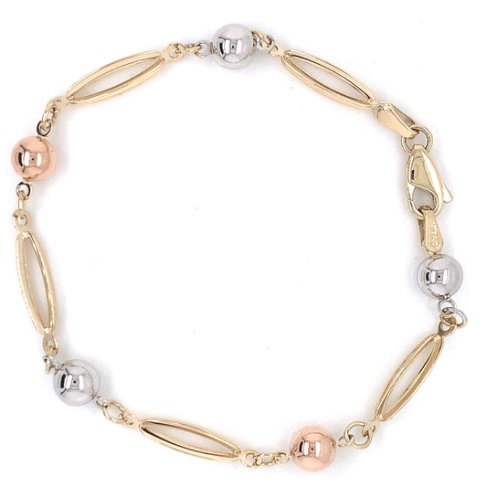 9ct Gold 3-Colour Beaded Bracelet GB391