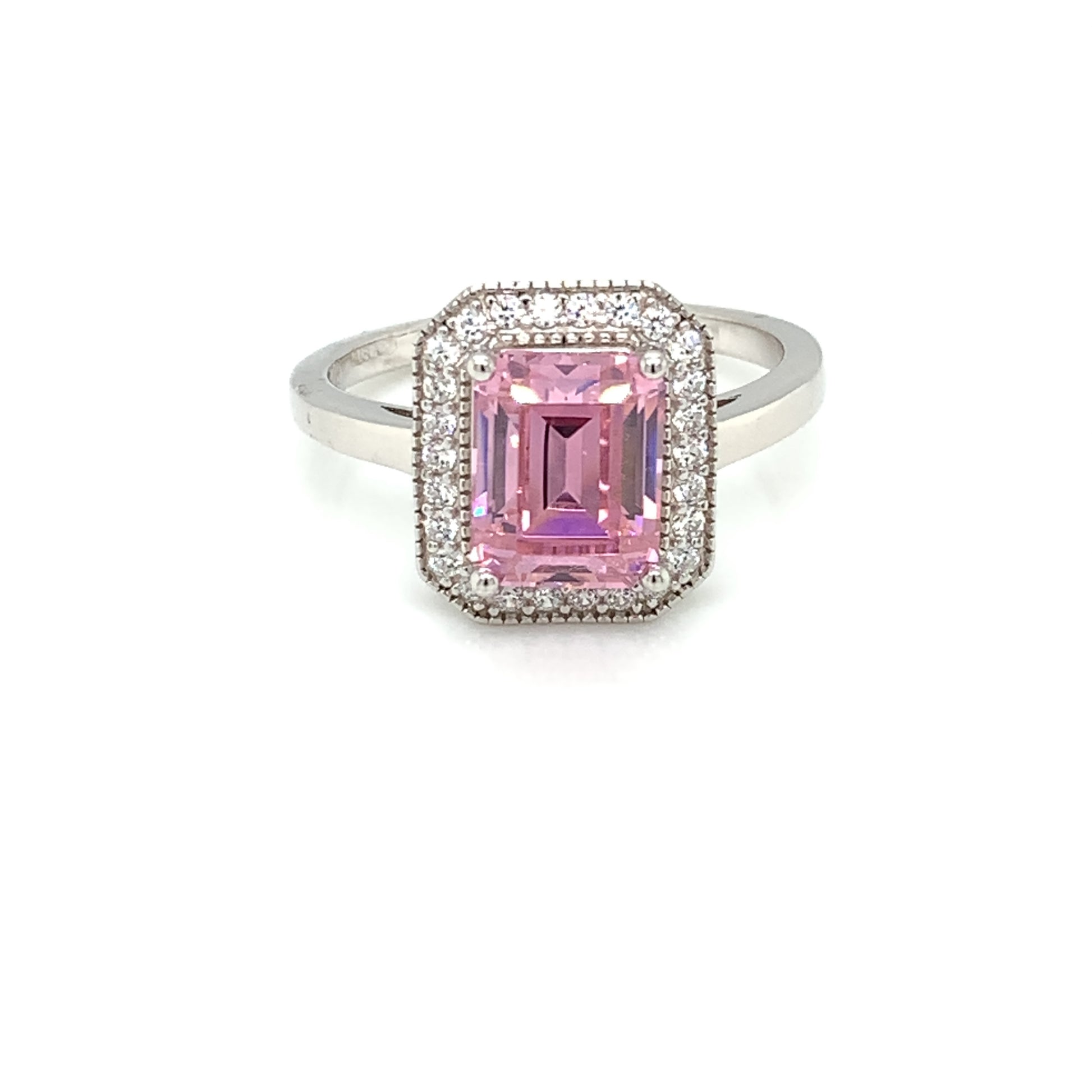 Sterling Silver Pink CZ Antique Octogon Ring