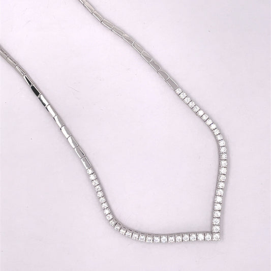 Sterling Silver V-shape CZ Tennis Necklet NC353