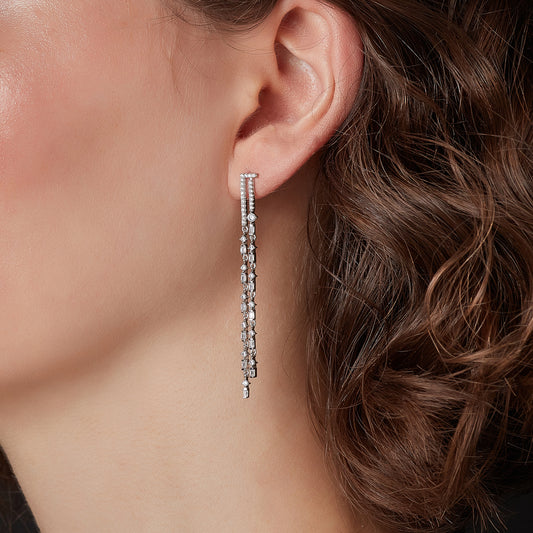Sterling Silver CZ Thin Double Long Drop Earrings N3415