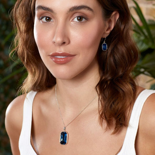 Silver Elongated Octagon Pendant With Montana Blue Crystal