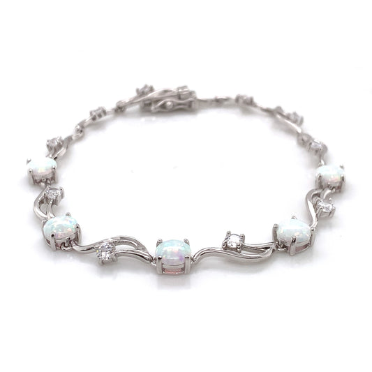 Sterling Silver Opal CZ Swirl Bracelet GL1168