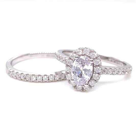 Sterling Silver CZ Oval Halo Ring Set