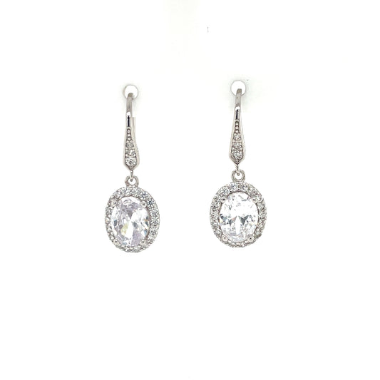 Sterling Silver CZ Halo Pendant & Earring Set GL2099