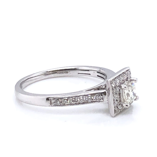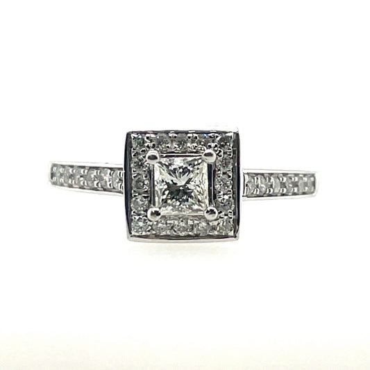 9ct White Gold 0.70ct Diamond Princess Halo Ring Z067