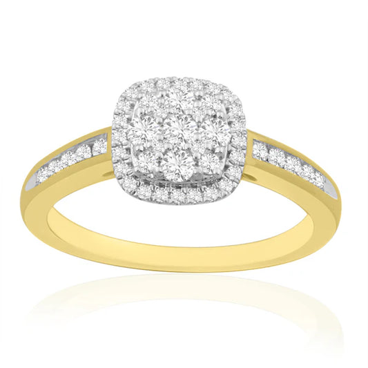 9ct Gold 0.50ct Diamond Cushion Halo Ring Z234