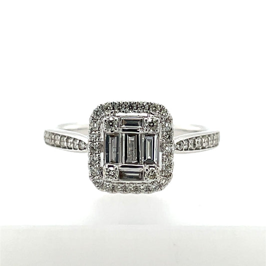 18ct White Gold Diamond Baguette Halo 0.49ct Engagement Ring Z190