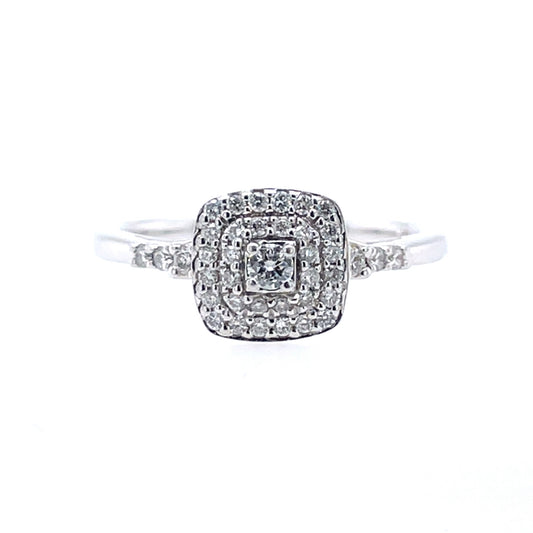 9ct White Gold Diamond Cushion Halo Ring Z078