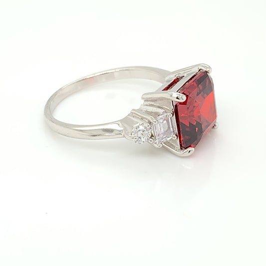 Sterling Silver Square Garnet CZ Ring RSE119