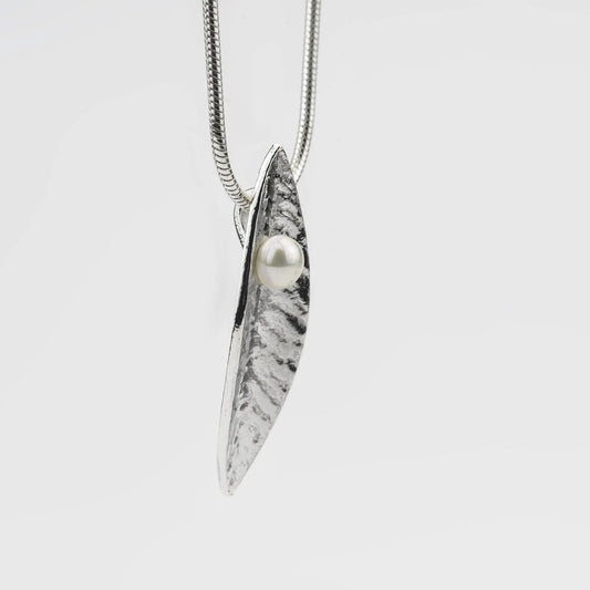 Martina Hamilton Leaf Sterling Silver and Fixed Pearl Pendant Small LFC3BK