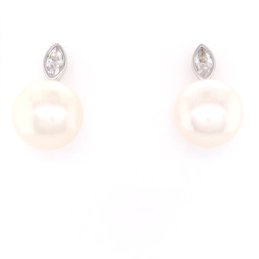 Sterling Silver Freshwater Pearl Marquise CZ Stud Earrings SER182