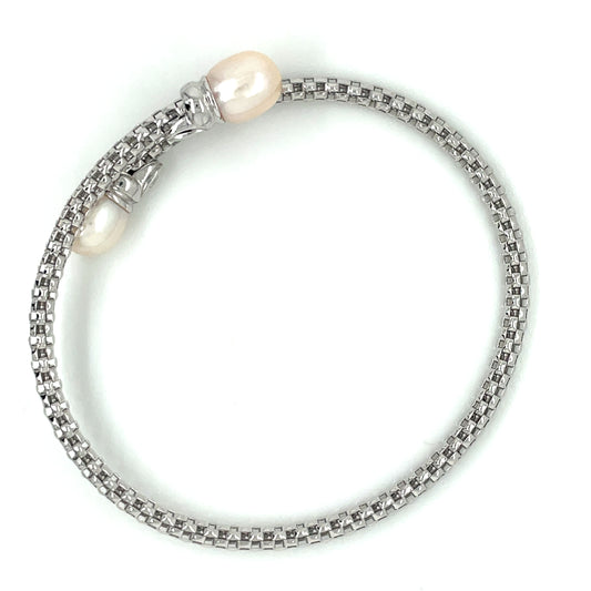Sterling Silver Italian Pearl Wraparound Torc Bangle JES29P