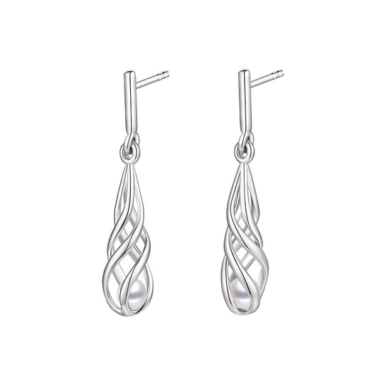 Silver Open Pearl Twist Drop Earrings ST2234