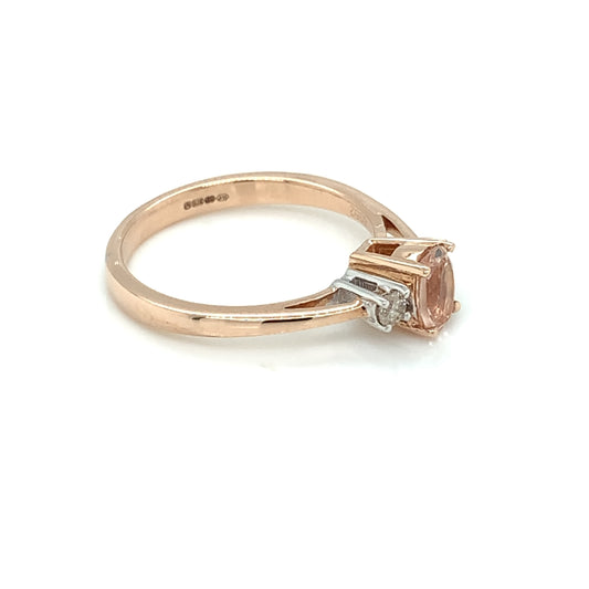 9ct Rose Gold Morganite & Diamond Ring GRX267