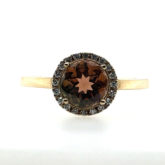 9ct Gold Tourmaline & Diamond Halo Ring GRX217