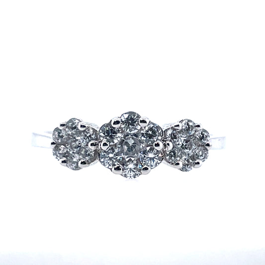 9ct White Gold CZ Trilogy Cluster Ring WRZ150