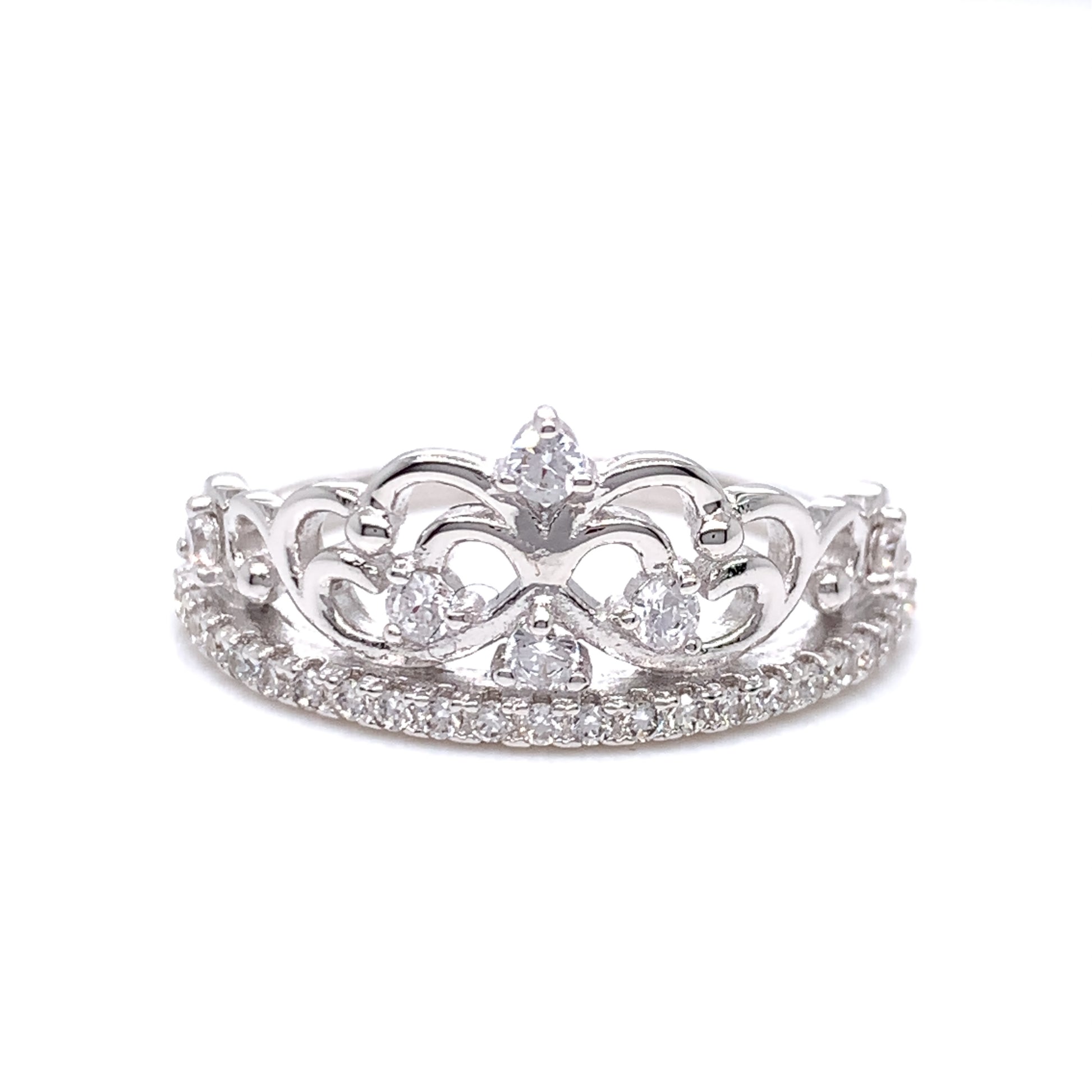 Sterling Silver CZ Princess Tiara Ring RSE077