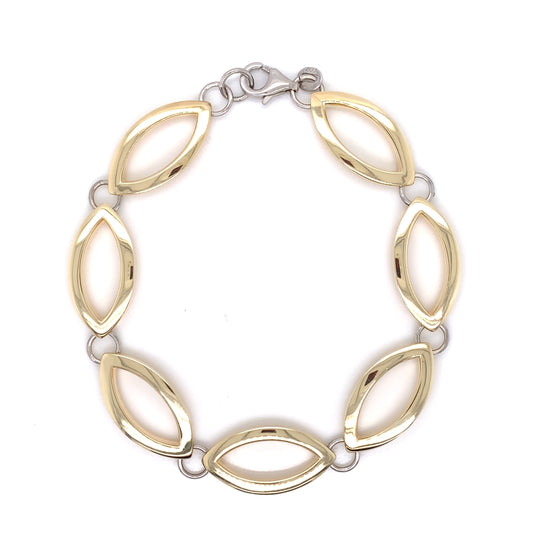 Sterling Silver 18ct Gold Italian Open Marquise Link Bracelet