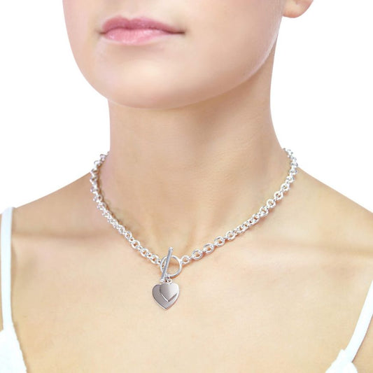 Sterling Silver T-Bar Necklace With Heart Tag 46cm N659