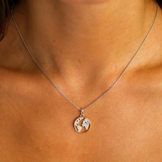 Sterling Silver Gold Plated My World CZ Necklace