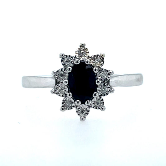 9ct White Gold Sapphire & Diamond Cluster Ring GRS192