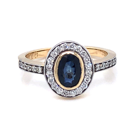 18ct Gold 1.00ct Sapphire & Diamond Cluster Ring GRS126